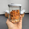 Nach einigen Wochen, siehst du wie sich die Cordyceps-Fruchtkörper im Glas nach oben strecken. Nun kannst du das Glas öffnen und die Pilze ernten :)